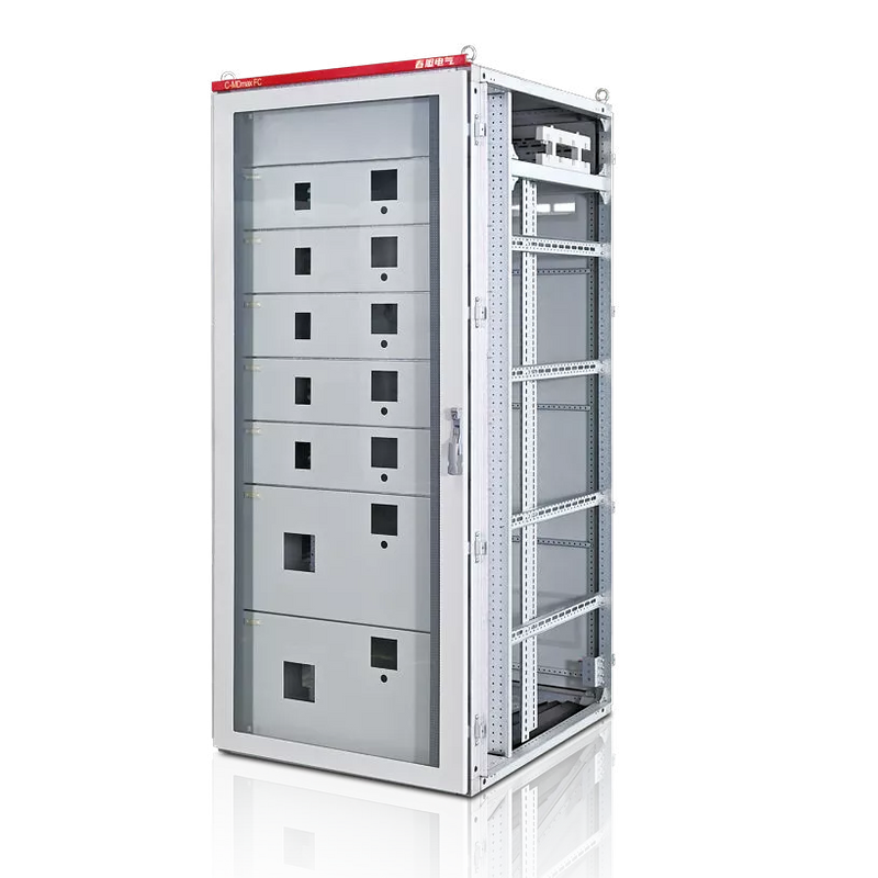 Three dvided compartments are set in the internal part of the frame: Equipment compartment for unit component, bus compartment formain bus and distribution bus, compartment for cable in and out (upper and lower incoming andoutgoing line is available)CMDmax FC frame adopts double-fold process, and is composed of T-material made of aluminum zinc plate. Modular holes with intervalof 25mm are distrbuted on the frame; and the frame can be assembled rapidly and fexibly. Switchgear frame is assembled by aluminumT-joint to effectively prevent eddy current. The switchgear body has highsymmetry precision.It adopts novel glass-door design, which not only improves the safety of switchgear but also improve the appreciative characteristic.Inserted or withdrawable breaker is adopted for switch in the switchgear to ensure the safety while replacing ormaintaining elements.Feeder circuit of power distribution control cabinet can be up to 18-loop (internal division form: 3b).Switchgear protection grade is IP40-1P55.