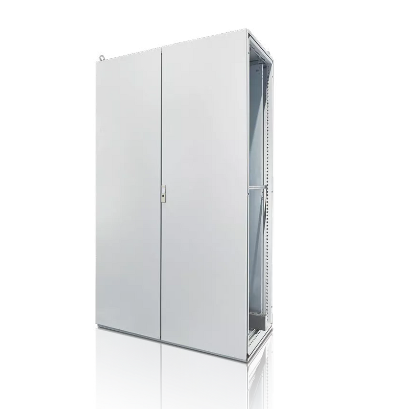 The combined electric cabinetis suitable for combining cabinets. The main frame formed by the unique nine-fold profie welded integrally carensure the high strength of the cabinet and the protection levelto lP54: the door panel is high from the ground, about 25mm, to ensure tlexibleand smooth opening! The frame is densely covered with 25mm pitch modulus holes to ensure flexible installation Sex.